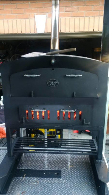 Tuscan Chef is a brand known for their durable construction, versatility, ease of use and customer satisfaction. This Tuscan Chef GX-D1 46-Inch Large Oven uses a unique vertical design for multi-level cooking including a separate fire box chamber with side vents which allow smoke to rise throughout the oven to perfectly flavor your meal. This oven is large enough for 6 12 inch pizza's at once or 2 20 pound turkies at the same time!